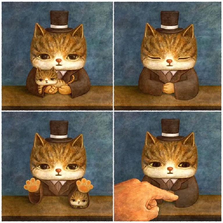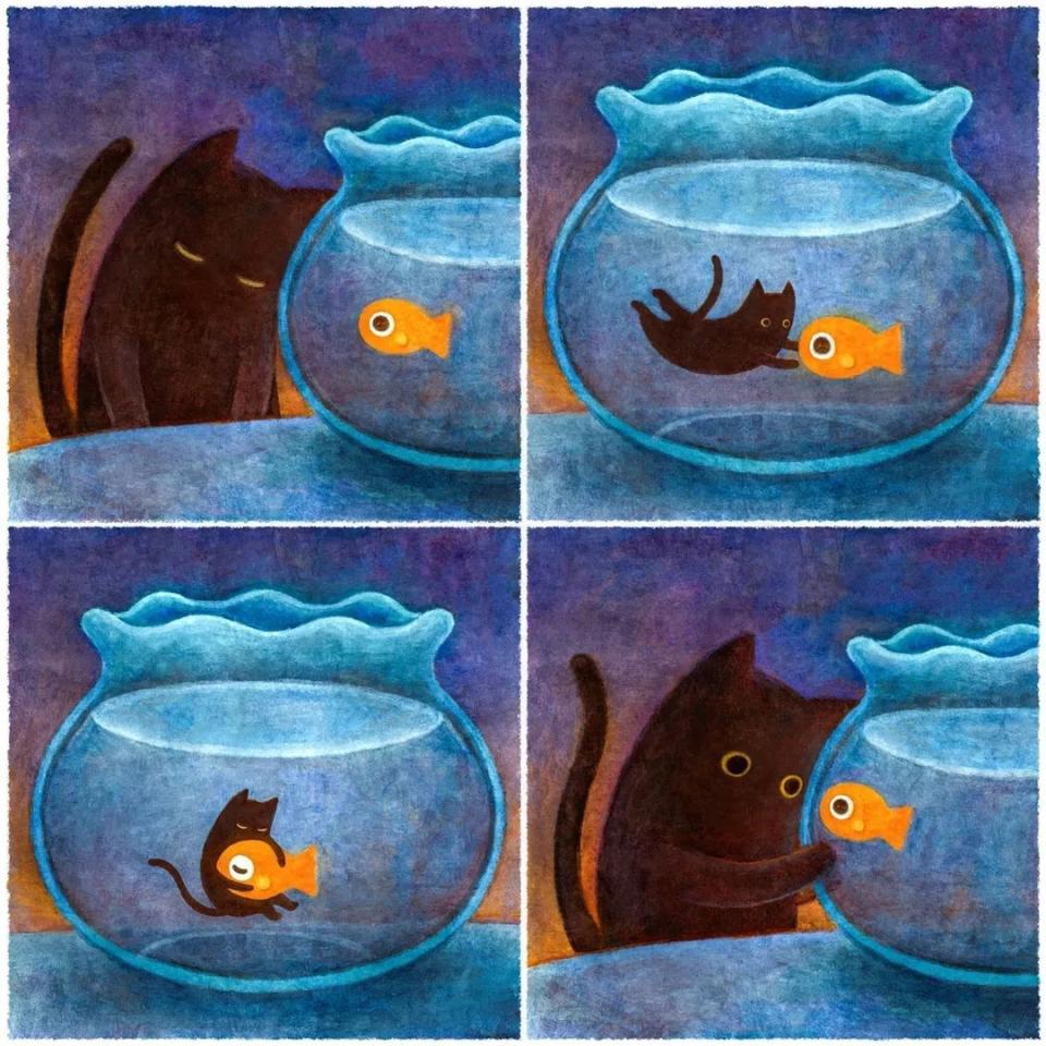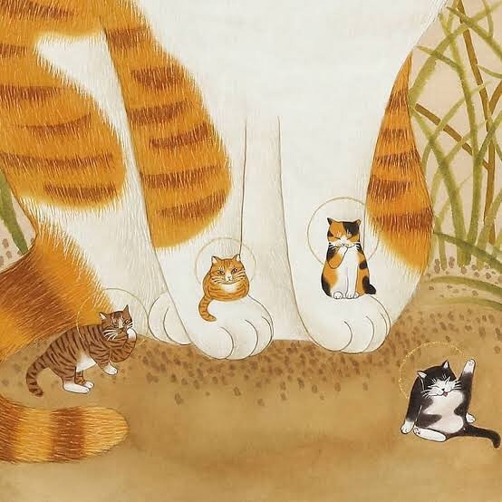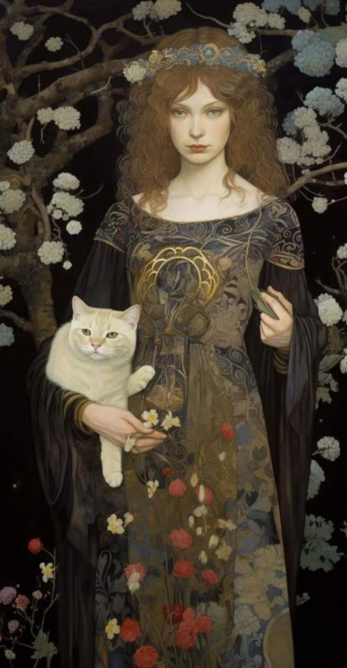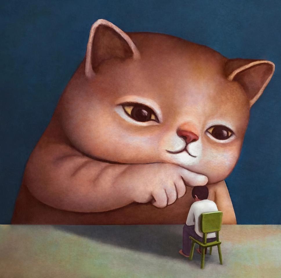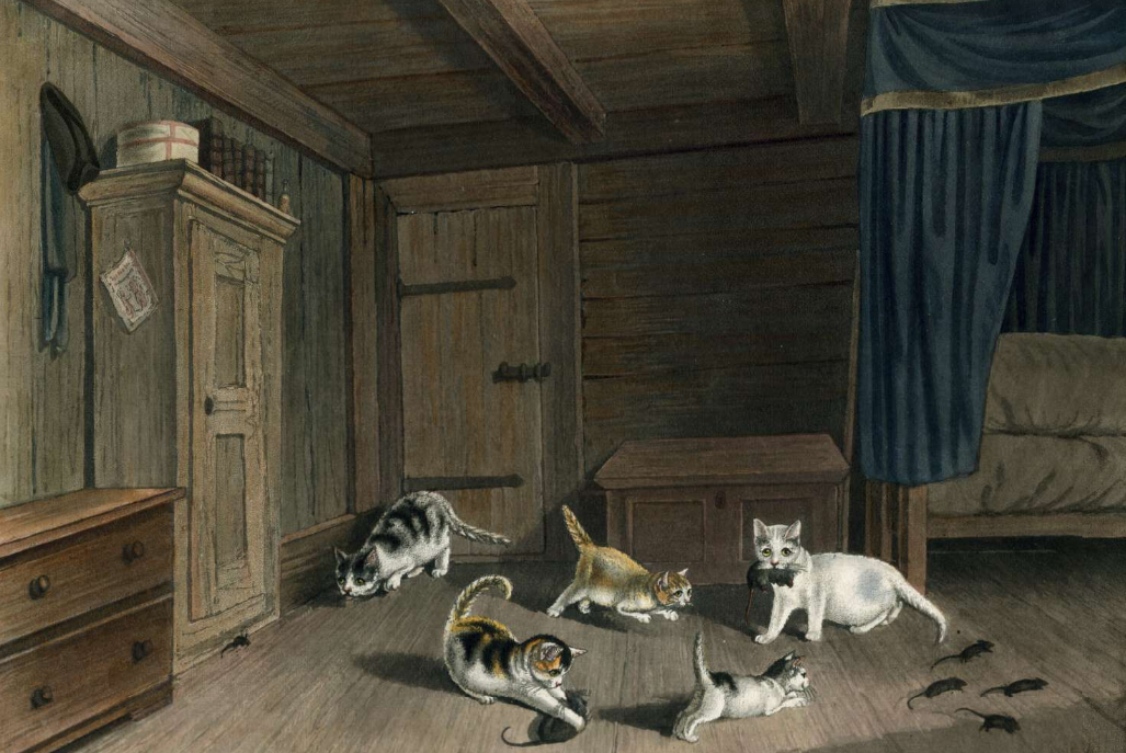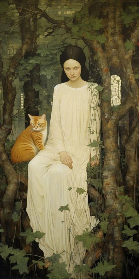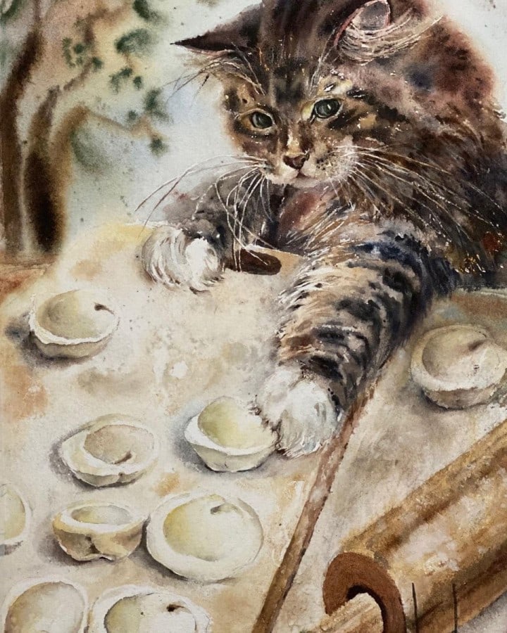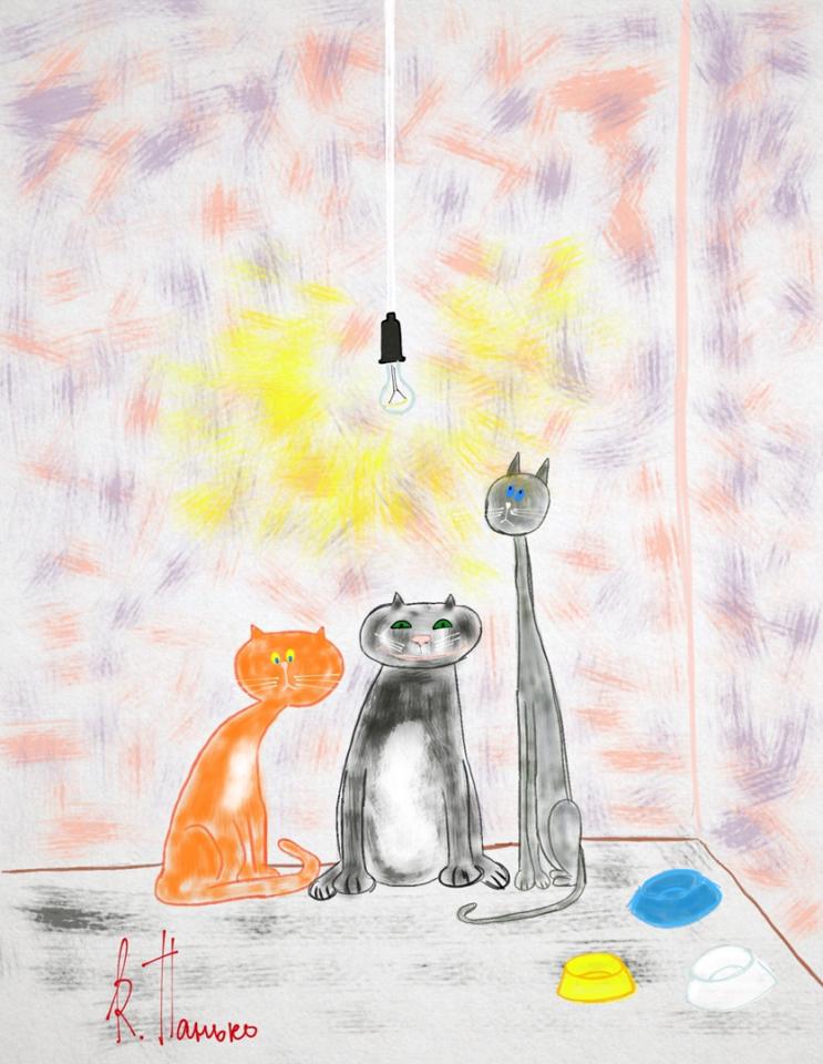 Именно на основе картины Vicky Mount сделано достаточно известное в интернетах изображение кота с попкорном: