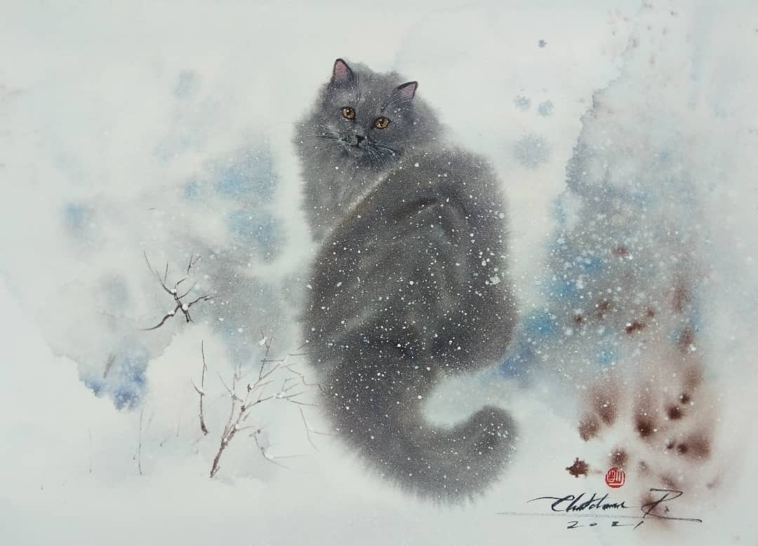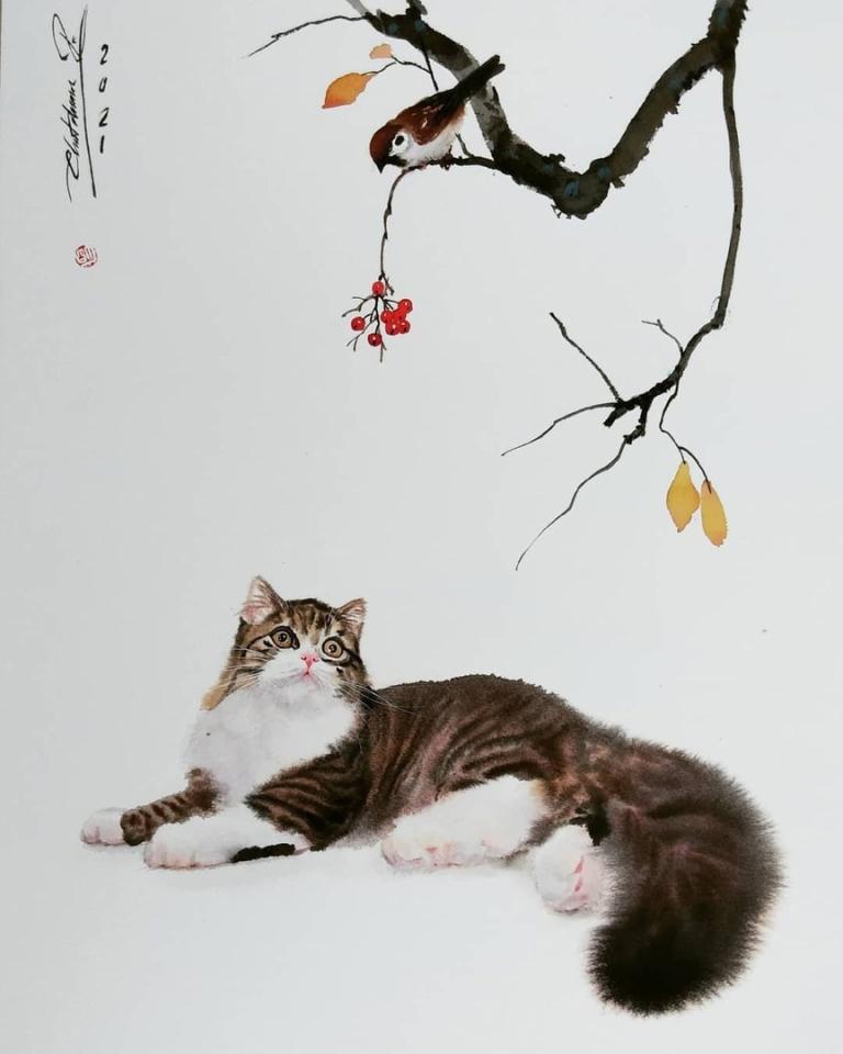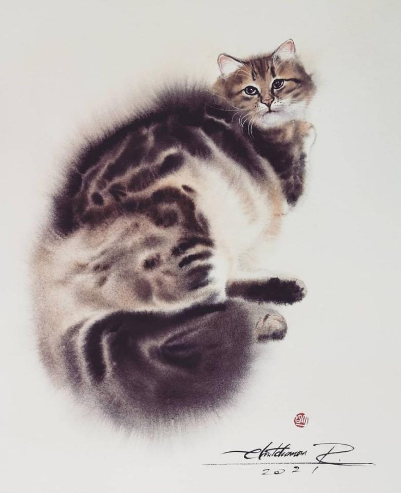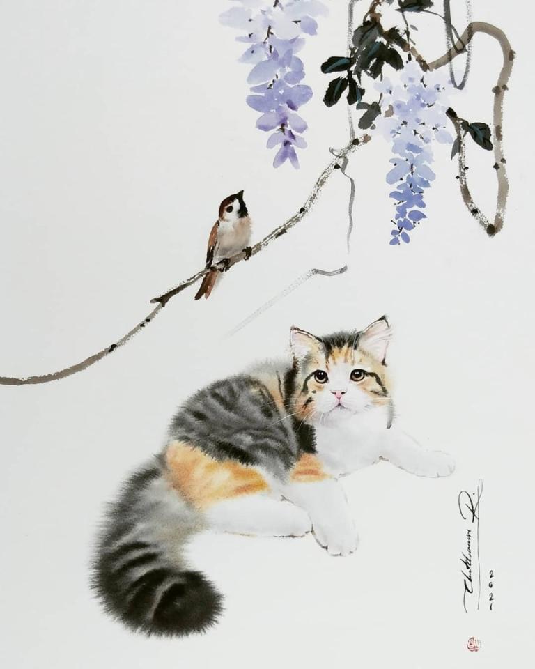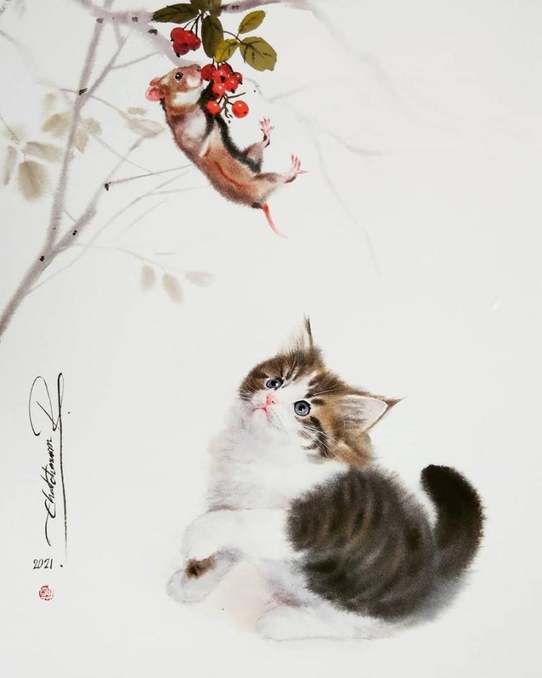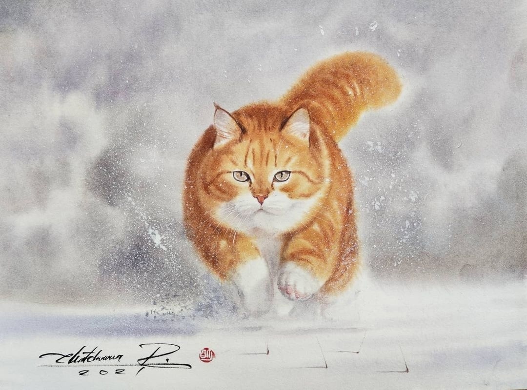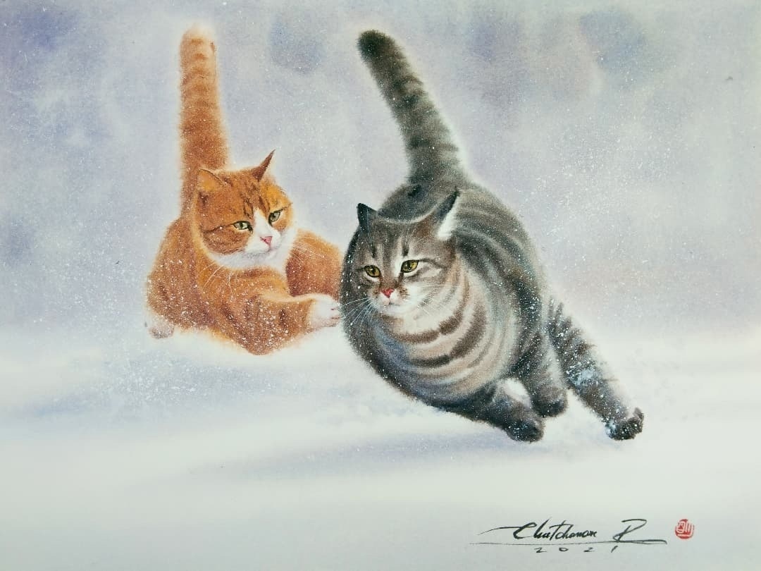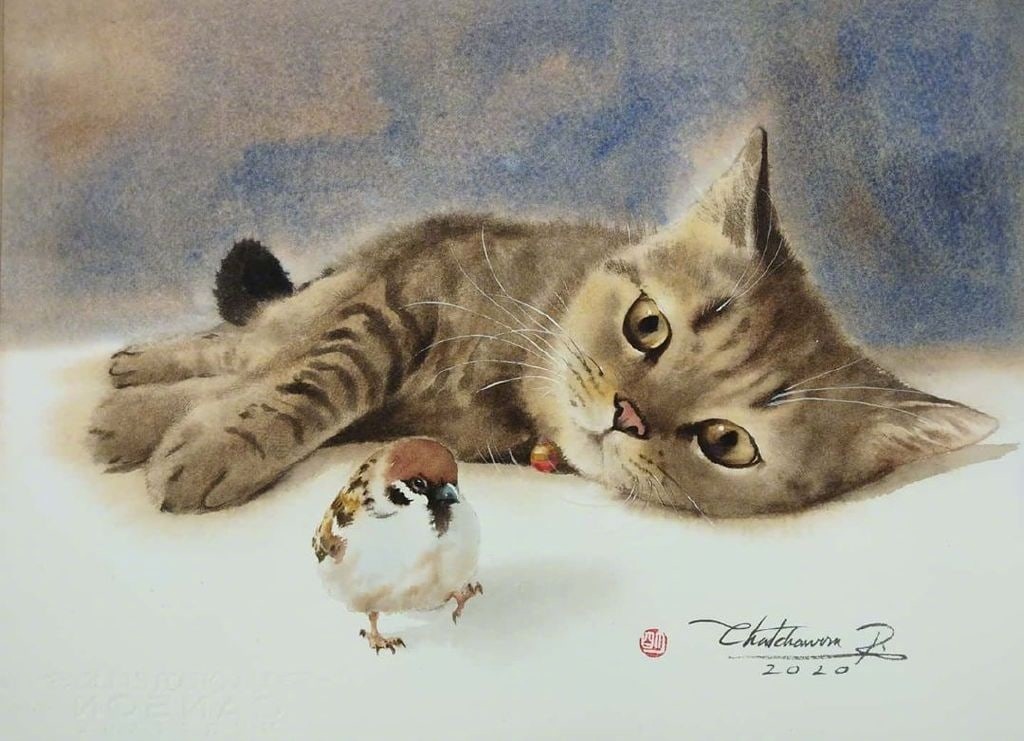 Именно на основе картины Vicky Mount сделано достаточно известное в интернетах изображение кота с попкорном: