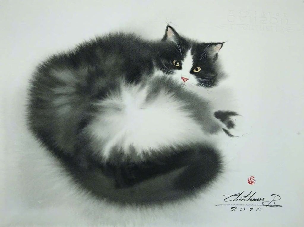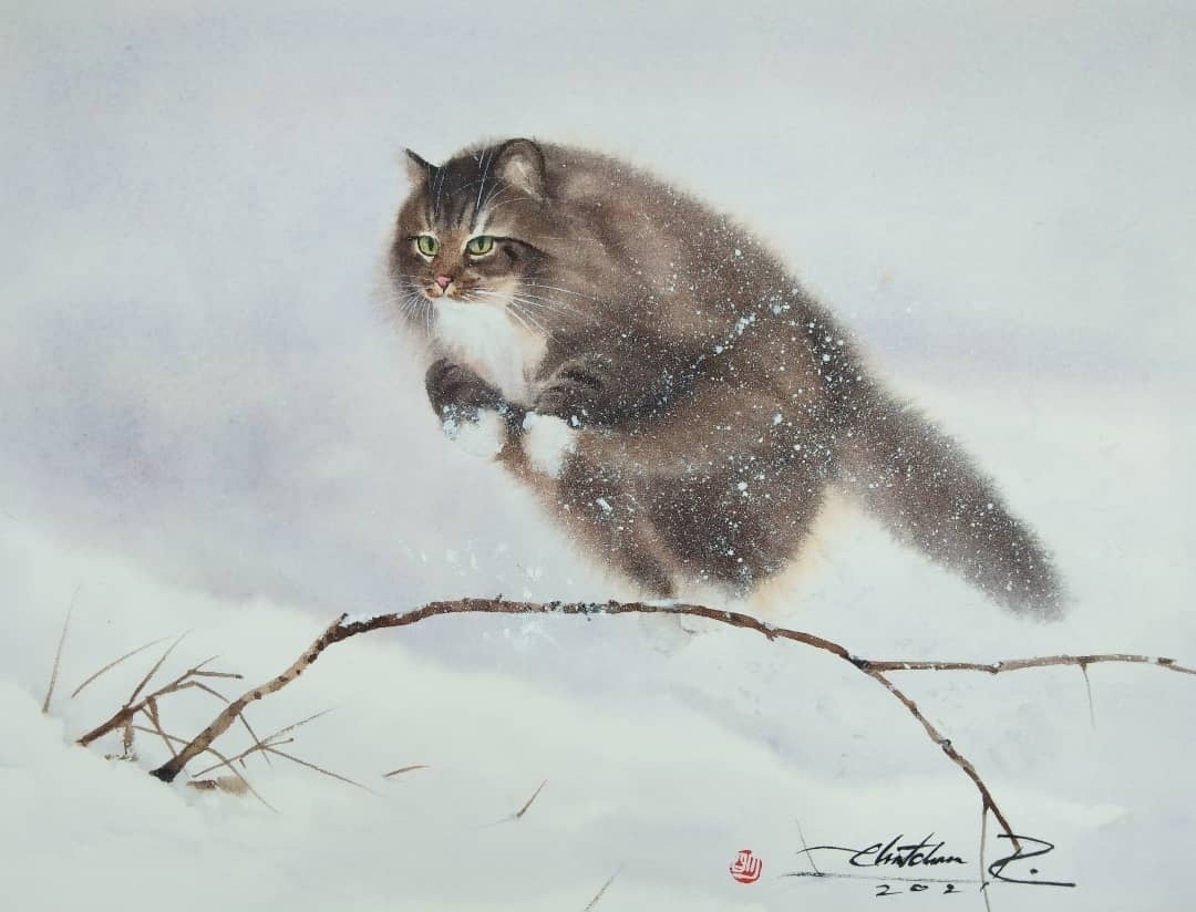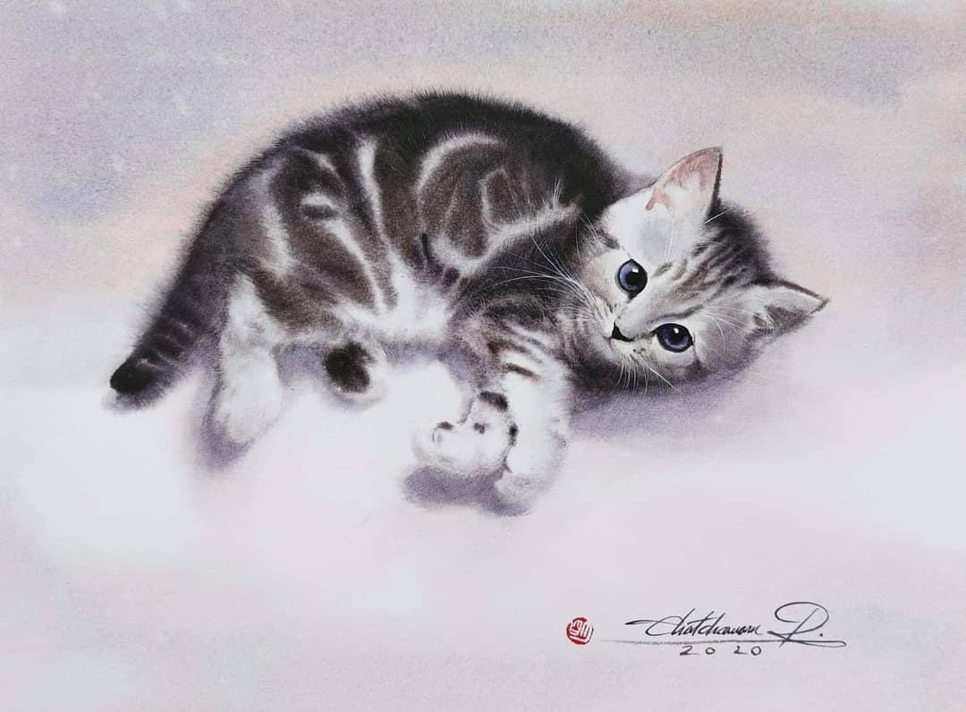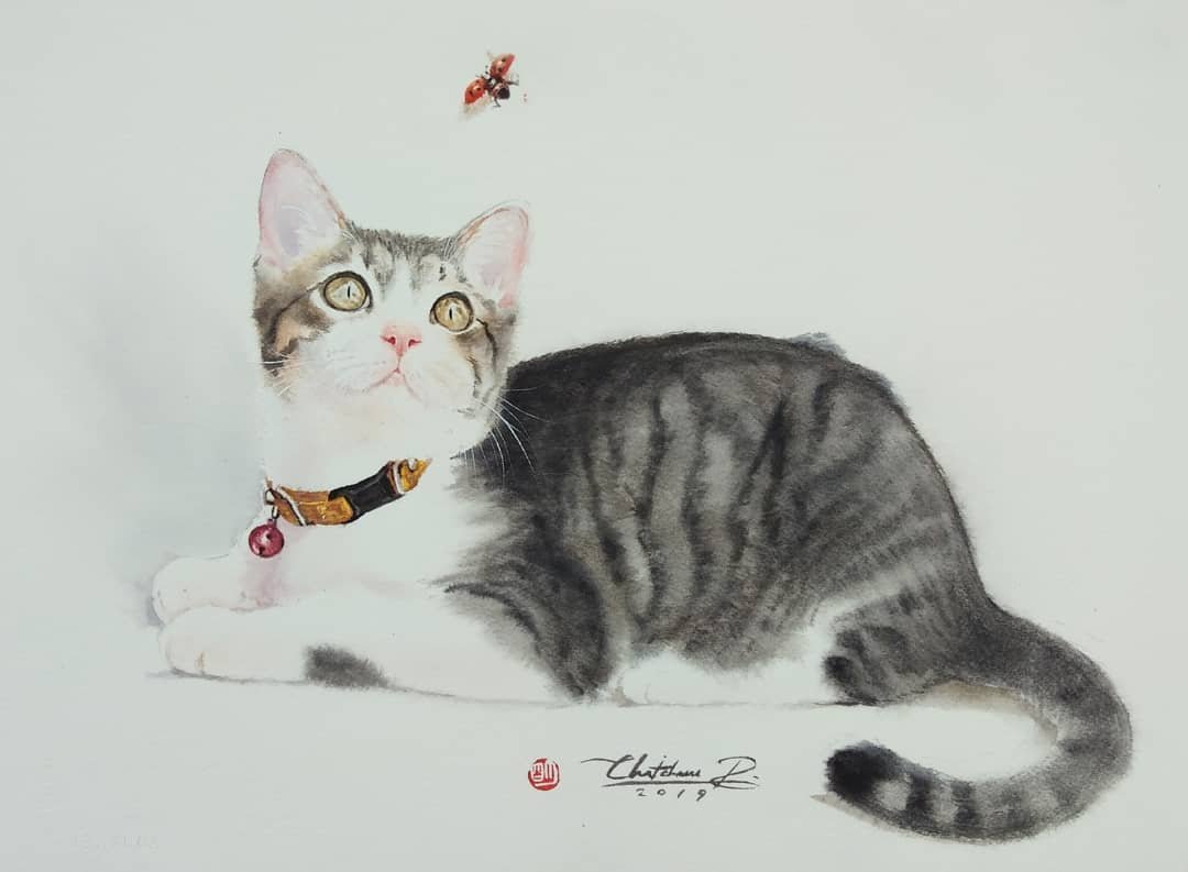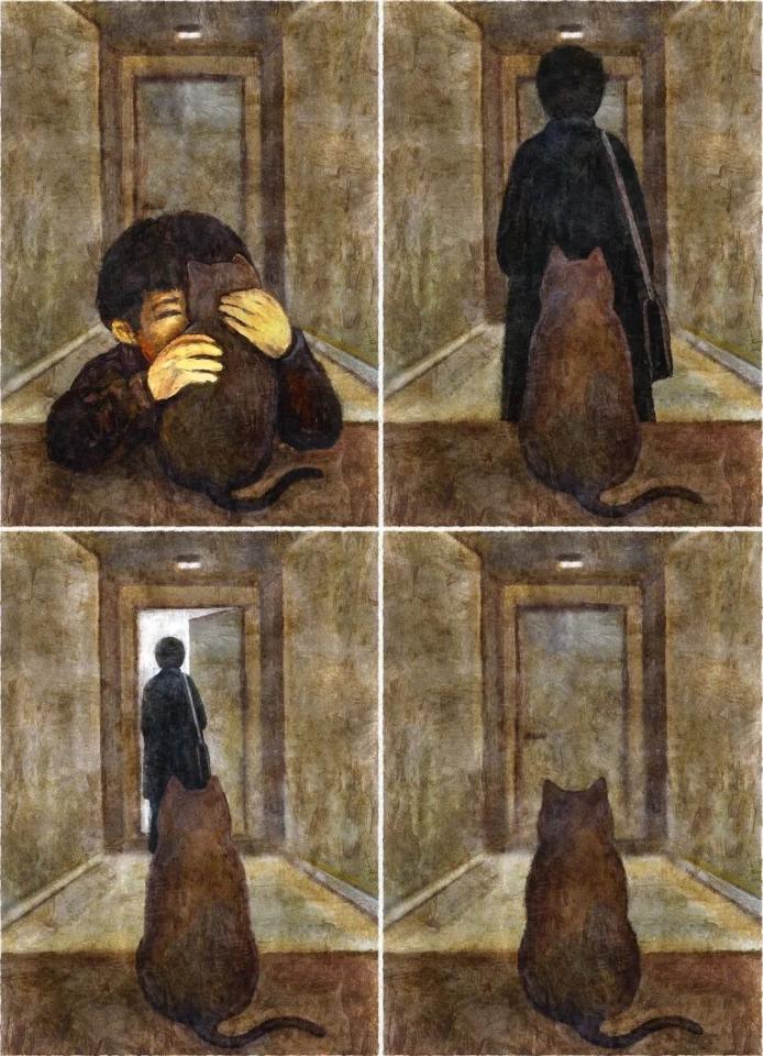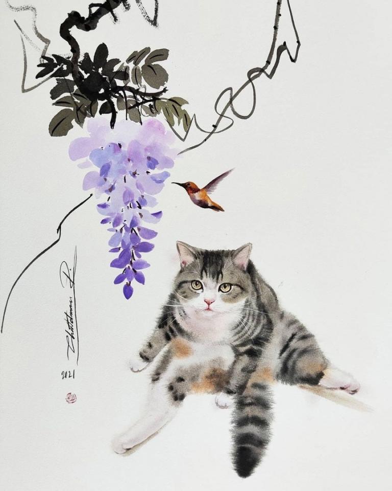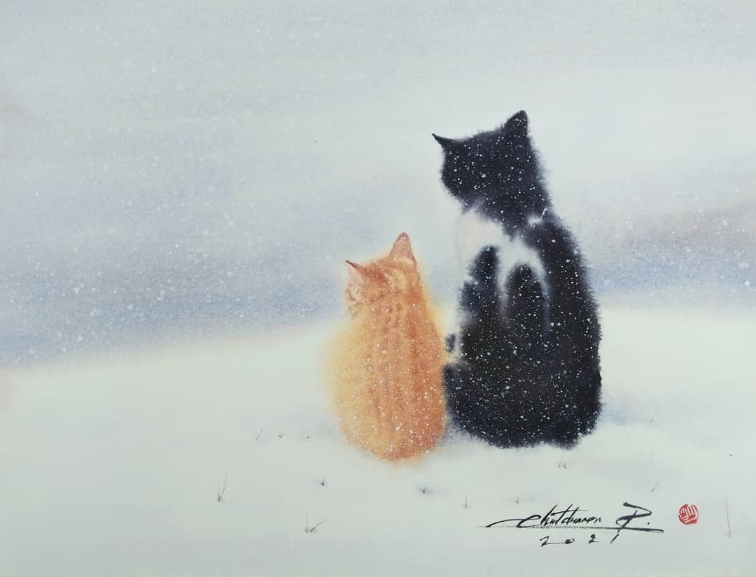 Именно на основе картины Vicky Mount сделано достаточно известное в интернетах изображение кота с попкорном: