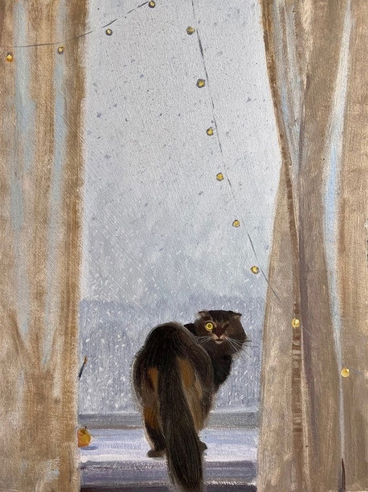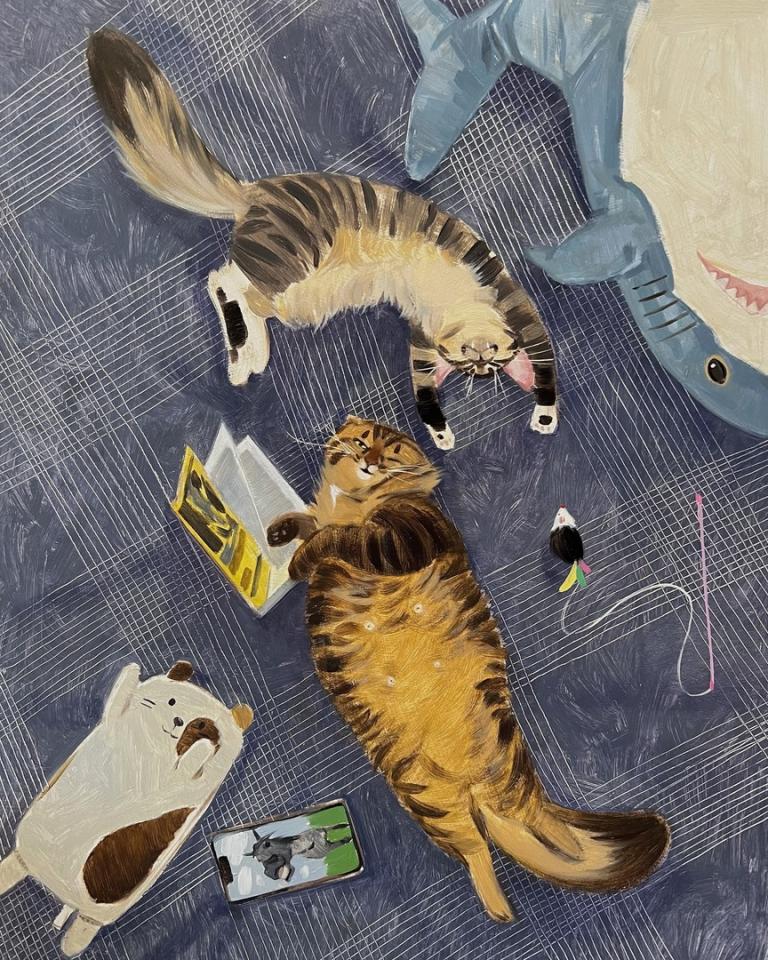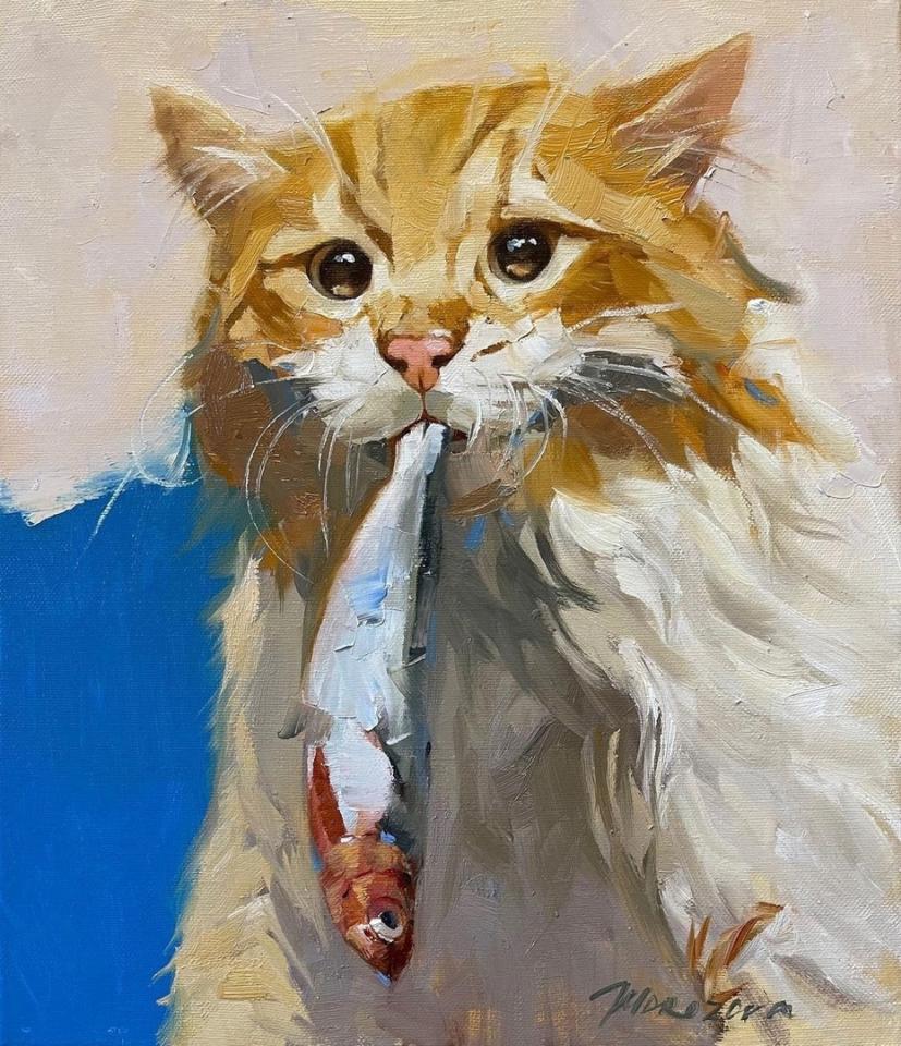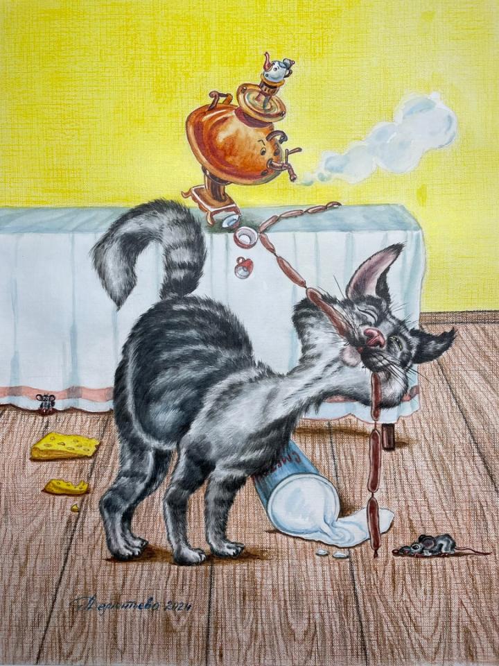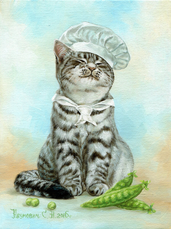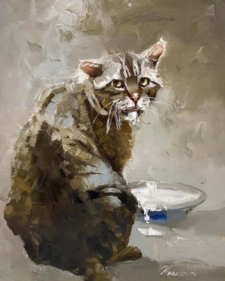 На последней картине кота нет, но называется «Что-нибудь для кота».