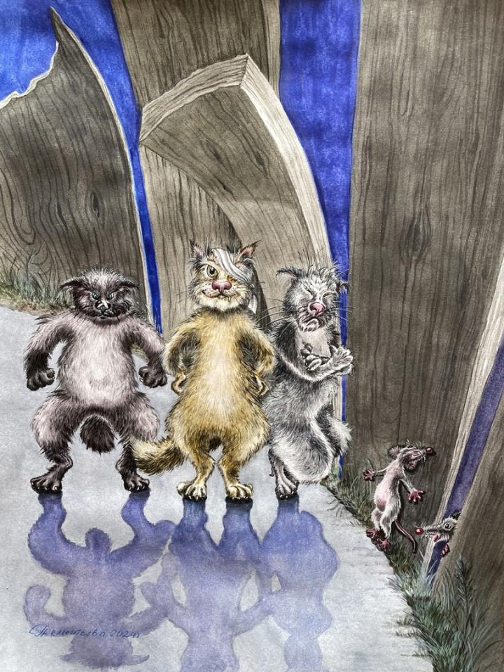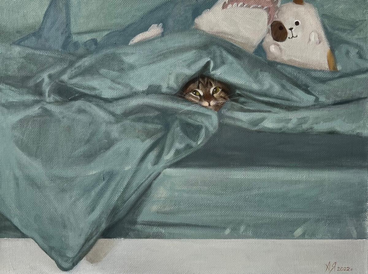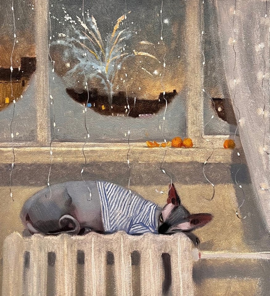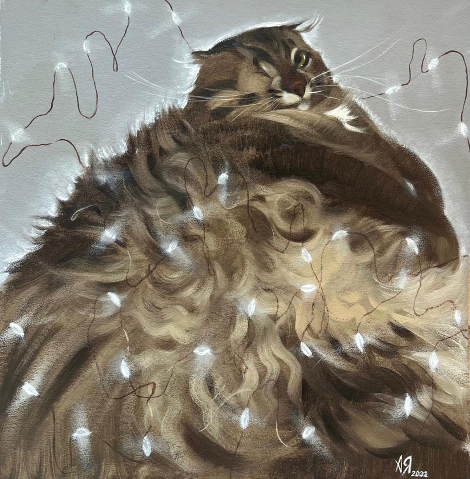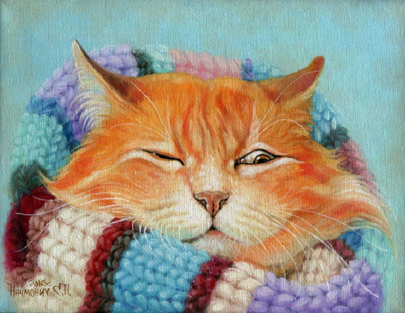 На последней картине кота нет, но называется «Что-нибудь для кота».