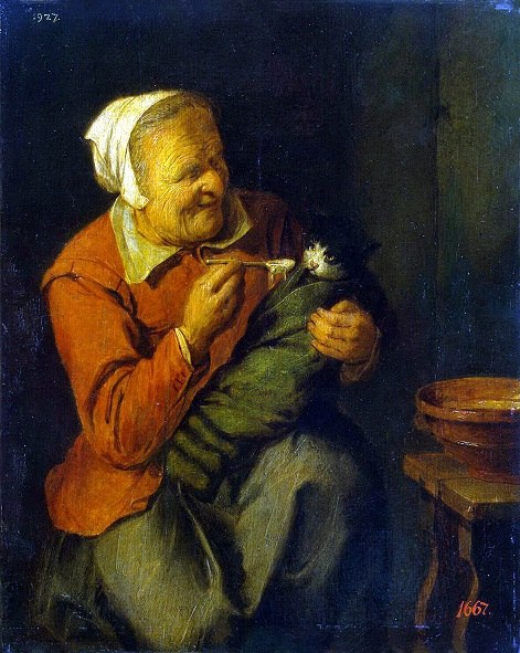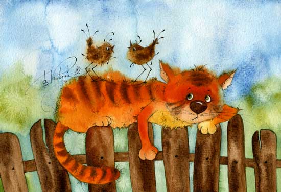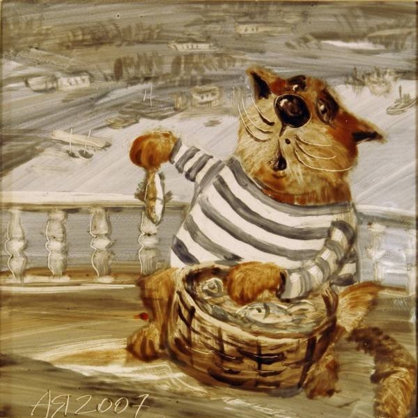 Или вот здесь в "Деревенской жизни" тоже кошка присутствует, пускай и ни как центральный персонаж, но все равно эту деревескую жизнь дополняет: