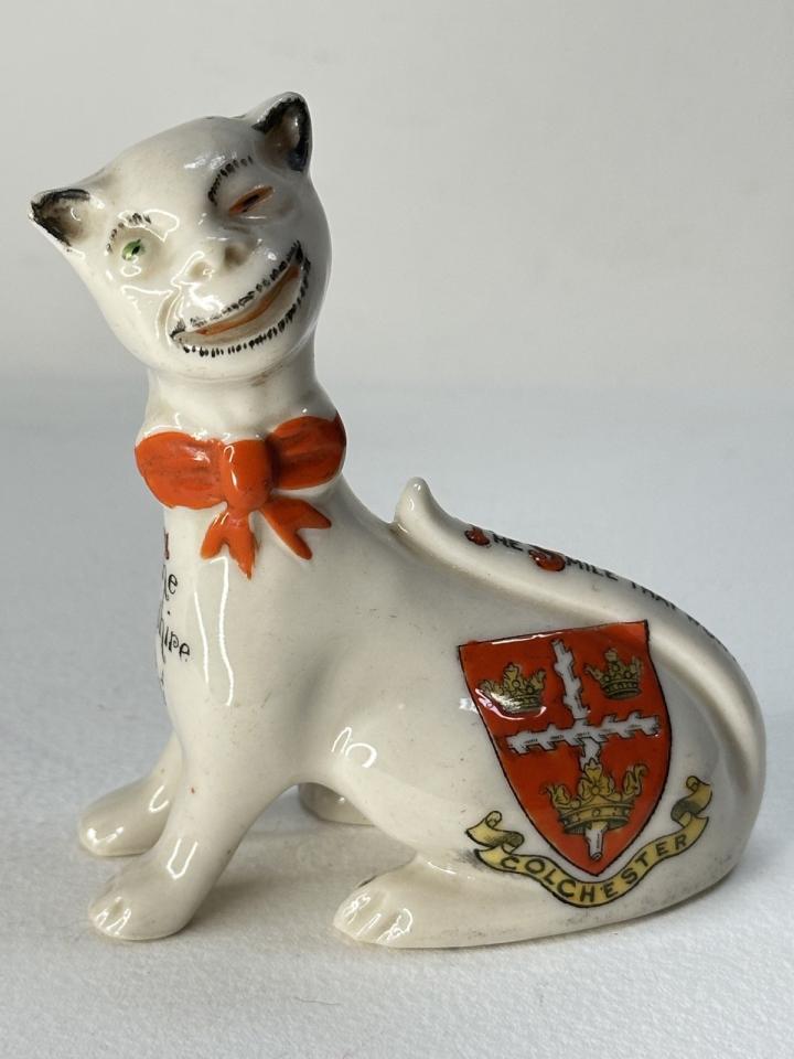 Статуэтка Чеширский кот, сувенирный геральдический фарфор, высота 9 см. Компания Carlton Ware, Англия, 1903-1926 годы.