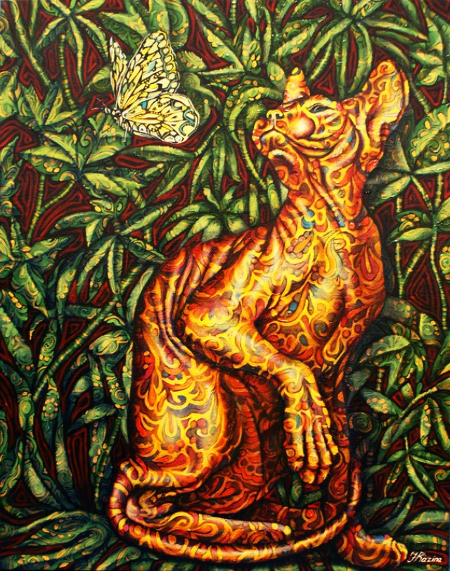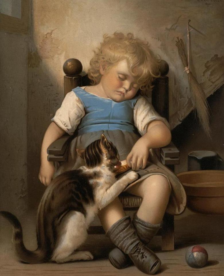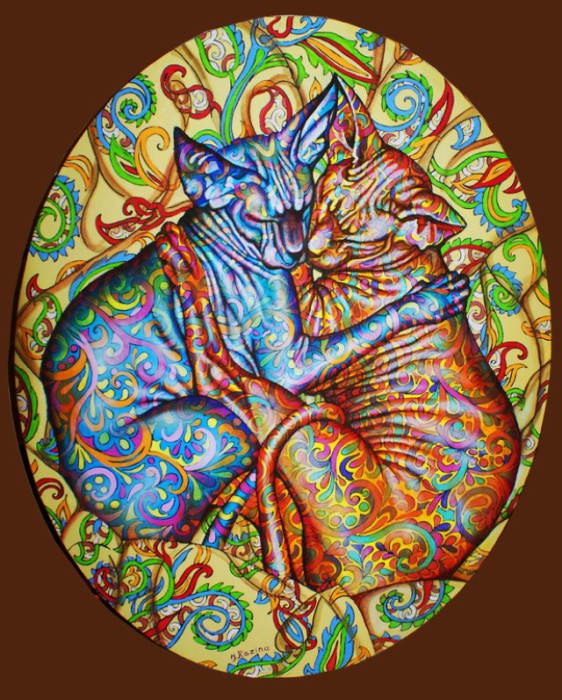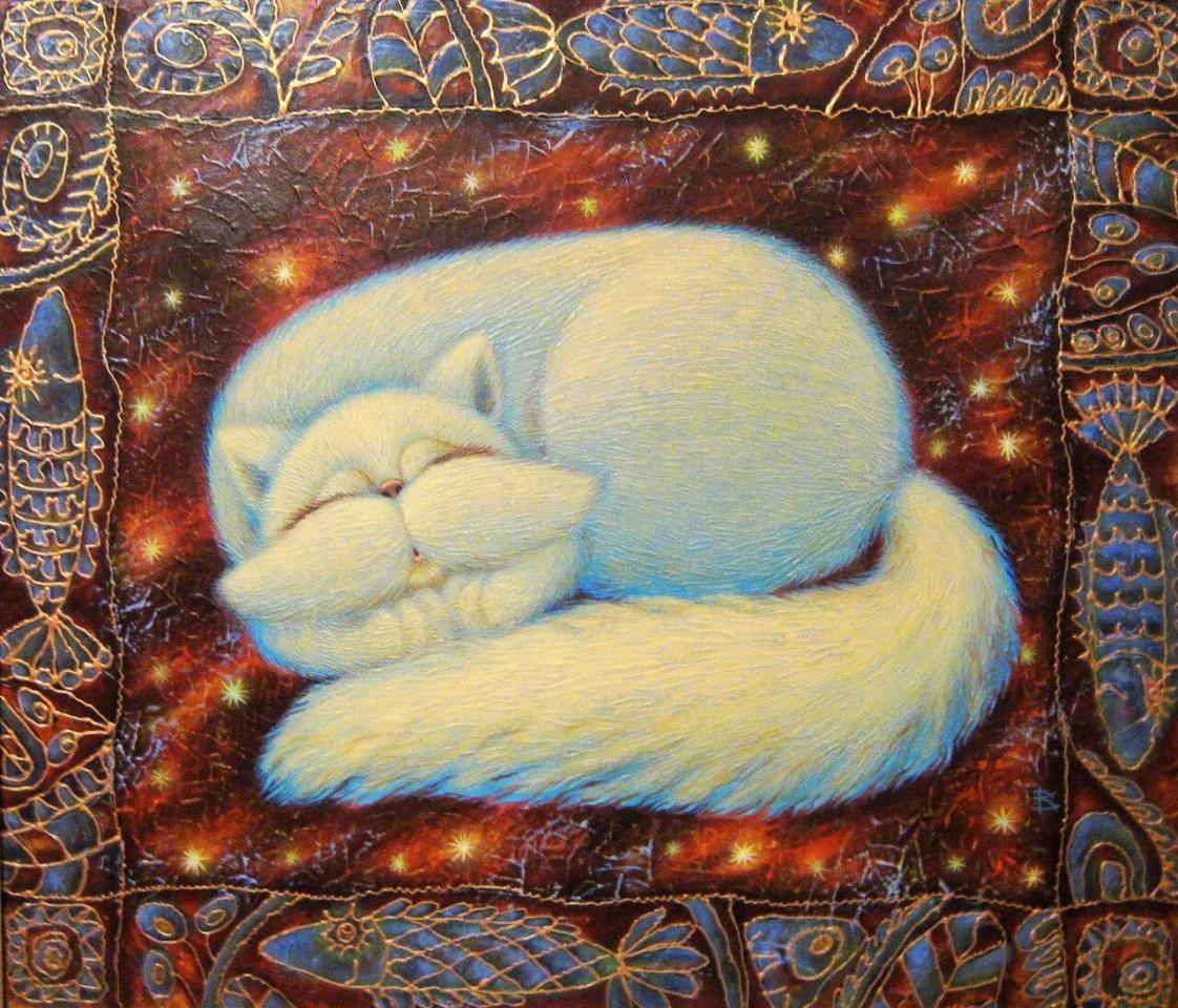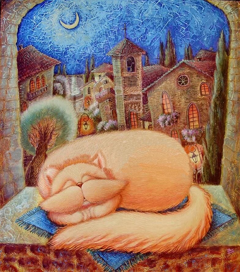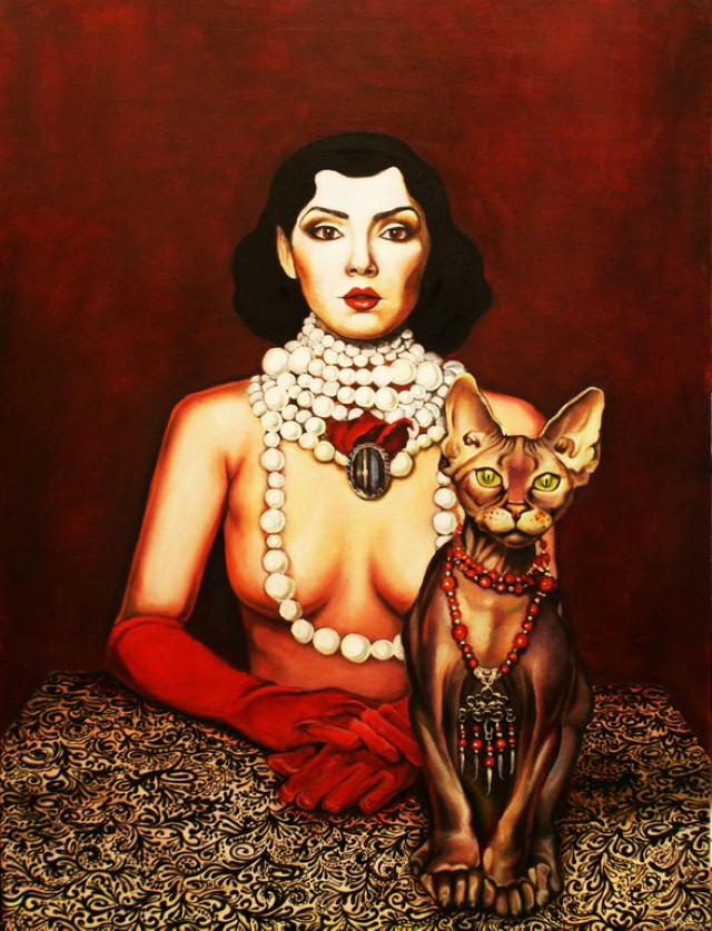 Вивьен Ли, чей актерский талант не уступал невероятной красоте, — одна из моих любимых актрис; ко всему прочему эта потрясающая женщина была еще и котофилом. «Я всегда была без ума от кошек», — говорила она. Тисси стал первым общим котом Вивьен Ли и Лоуренса Оливье. Беспородного котенка они взяли в отеле, где в то время жили, — там как раз принесла потомство местная кошка. Позже Оливье дарил жене только сиамских котов, роскошных красавцев, носивших подаренный хозяином ошейник с позолоченными колокольчиками. У Тисси такого ошейника не было, зато были чудесные разноцветные глаза, и Роджер Фёрс, известный кино- и театральный художник, написал его портрет — рядом с красавицей-хозяйкой. Работа, по-моему, очаровательная — теплая и нежная.