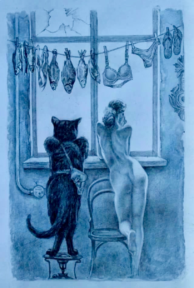 Художник Александр Завалий из Геленджика рисует своего кота Тимофея маслом на исторических полотнах.
