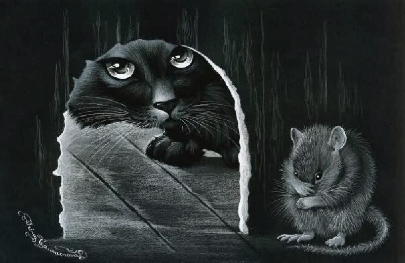 Дед, а на чёрном квадрате Малевича котэ найти смогёшь?) А он там-таки есть! Чорный, сукин сын, як сажа