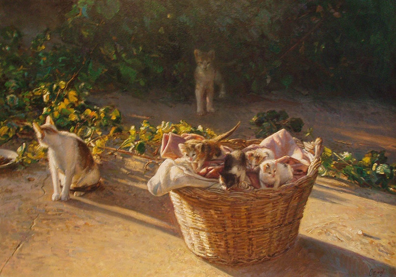 Если я не ошибаюсь эти реалистичные коты принадлежат кисти испанского художника-самоучки Antonio Guzman Capel.