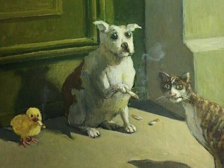 Если я правильно понял автора картина называется "Котис с камрадамы пиздят Луну"...