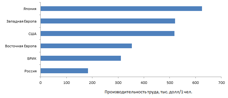 Имхо, корень, как всегда, в производительности труда. По этому поводу выше приводилось несколько графиков. Но не надо забывать, что речь идет о производительности ОБЩЕСТВЕННОГО труда, а не об интенсивности труда каждого человека. Это вещи резко разные.