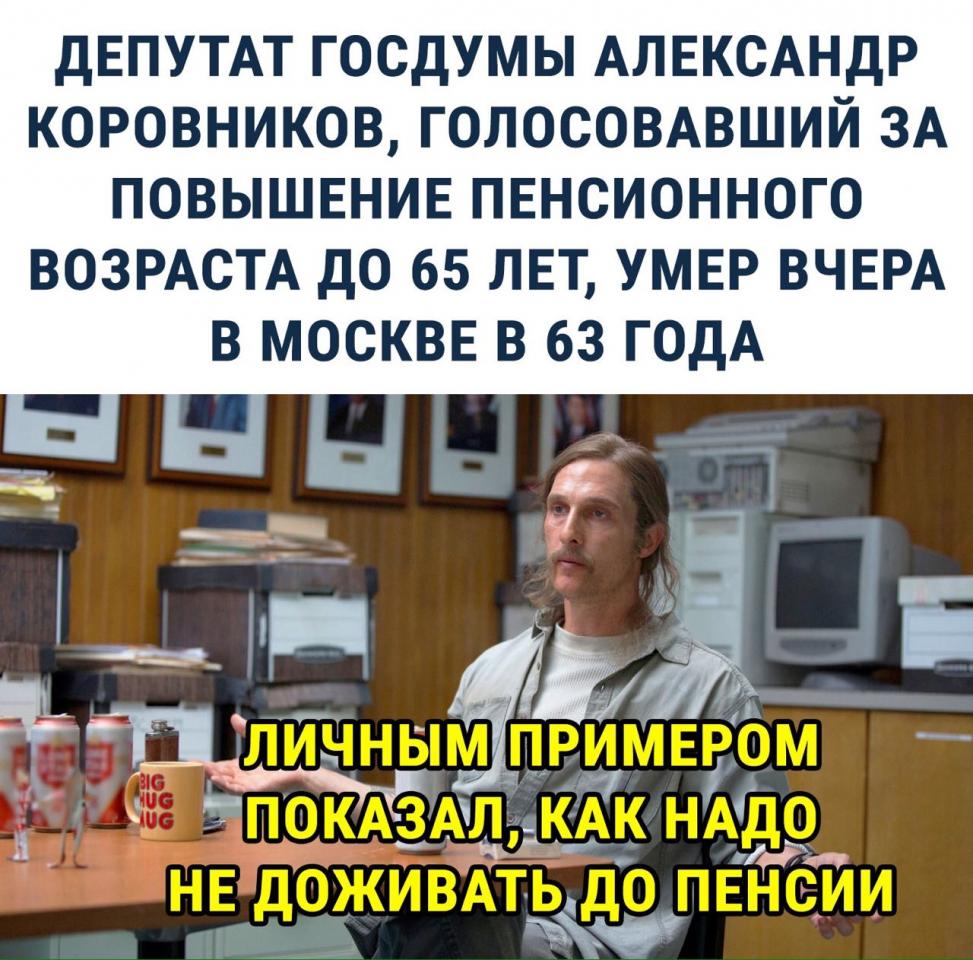 Ясное дело , что это касается работяг, а не тех, кто "служит в очистке", и уходит типа, на пенсию в 38 ( Им правда оплачивают из других фондов, но плюсуют в количество пенсионеров, дабы вывести формулу- что на одного "работающего - один пенсионер, и если работяг не снять с довольствия, еще на пяток лет, т.е фактически до конца жизненного цикла , то все "скоро лопнет")