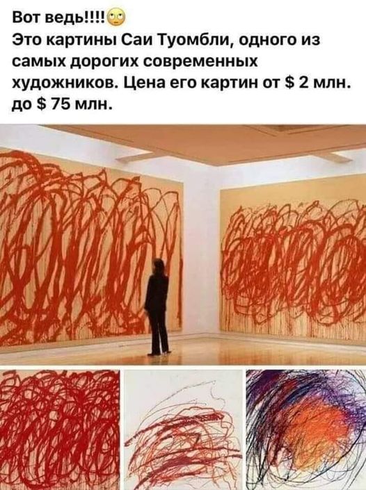 Мы всецело на стороне художника. Ибо ему удалось выразить суть современного европейского искусства. Фактически в предельно чистом, дистиллированном виде, освободив это искусство от остатков предметности. Оставив от него голую, но честно выраженную идею: «Бери деньги и беги».