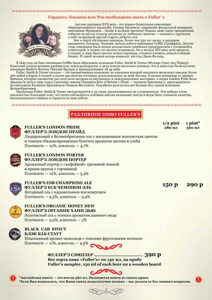 значится, единственный фирменный ресторан известной пивной марки в Мск. Здесь иногда наливают знаменитый эль - Лондон Прайд. Оригинальная линейка сортов пива - на картинке. Полный набор бывает не всегда, но всегда что-то да есть в наличии. Цена за пинту от 290 до 390.