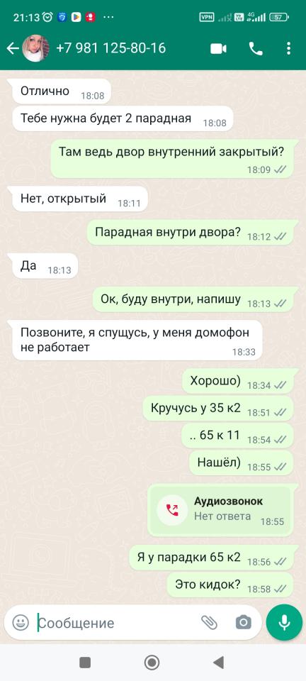 Приезжаю, подтверждаю, звоню вотсап, хуй там, не берёт. Звоню на телефон, сброс, как в чс. 10 мин жду и нахуй.