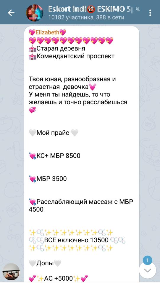 Нашел данное туловище в тг. По локации было удобно в тот момент. У неё два аккаунта, со скрытым именем пользователя. Объявления однотипные, всё одинаково по условиям. Ориентироваться можно разве что по адресу и фото.