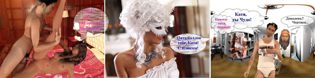 А серьёзное опасение, что та, которая выбрана была (при самом первом заходе почти три месяца назад на сайт АМ) в маске со скрытым лицом, окажется недостойной моих долгих мечтаний. Сам себе нафантазировал про неё, хоть сейчас в ЗАГС. А вдруг разочаруюсь? Катя Ройаль. Именно её фотография - в белоснежном парике и белой же венецианской маске, и тело, облаченное в шикарное бальное платье с вожделенно и интригующе обнажёнными плечами и руками - явилась тем магическим фактором (магнитом), который вот уже на три месяца привязал меня, как зачарованного к посещению сети салонов Амстердам. И ходил-то всё кругами, набираясь впечатлений… А теперь - иду к Цели!