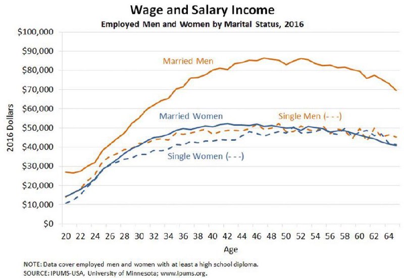 Стоит жениться - и доходы на человека падают, а расходы растут (за счет бесконечных женских хотелок). Если представить еще и двух детей, то месячный доход должен быть от 250 тысяч. Это уже не для всякой семьи выполнимо.