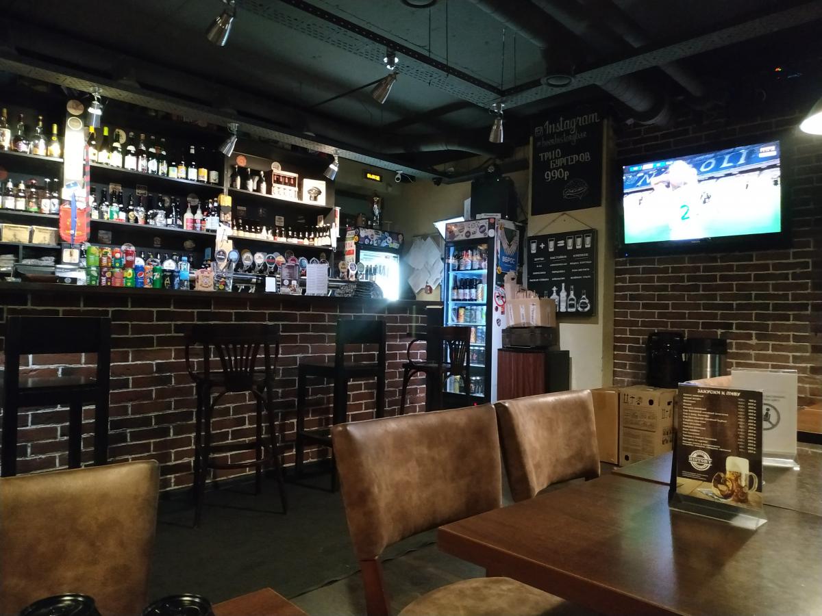 Два зала, 1й с баром, 2й обеденный. Оба с туалетами. Обстановка уютная. Полки с Бельгией и разным заморским крафтом + 2 холодильника с нишими AF и Бакуниным в основном, так же стоит немецкая пшеничка с лагером. На экранах Матч-тв.