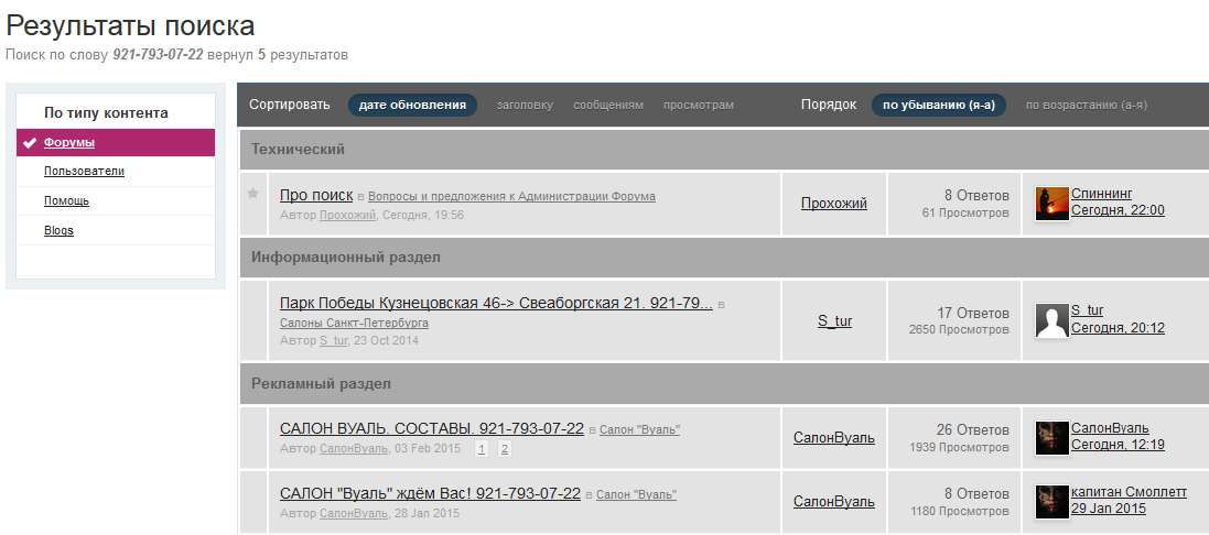 Телефоны нашел. Могу предположить. Попробуй выйти на главную страницу форума и пробить телефон. Объясняю, если находиться в теме и забить в поиск что-нибудь, то он ищет в теме, если не указать где искать. см скрины
