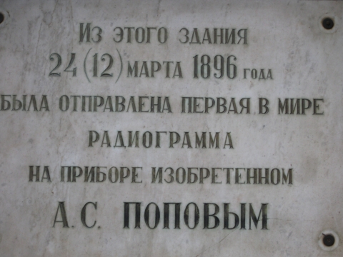 25.04. (07.05. по новому стилю) 1895 года на заседании Русского физико-химического общества в доме для игры в мяч во дворе Санкт-Петербургского университета А.С.Попов прочитал лекцию: «Об отношении металлических порошков к электрическим колебаниям». Говорят, там показывали реально действующее устройство. Но документальных свидетельств тому немного.